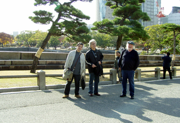名古屋へ向かう新幹線の時間まで少しゆとりがあったので、大阪城へ行くことに。ジョンの後ろに背後霊のようにさり気なく(わざとらしく)写っている男性は、 今回のツアー全会場追っかけを敢行したTAB生徒のクマギタフミオくん。(2005/12/3)